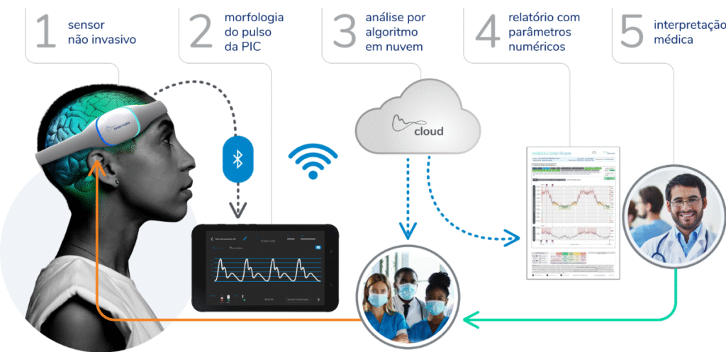 A Brain4care é uma tecnologia inovadora que permite avaliar alterações no volume e no risco de hipertensão intracraniana (HIC) e hipofluxo cerebral de forma rápida e segura .